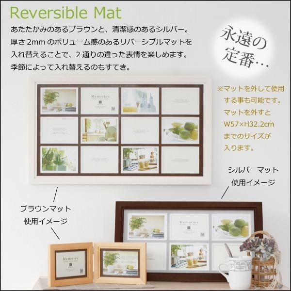 | 明るく清潔感のある空間を演出するホワイトのフォトフレーム。あたたかみのあるブラウンと、清潔感のあるシルバーのリバーシブルマット付☆ |