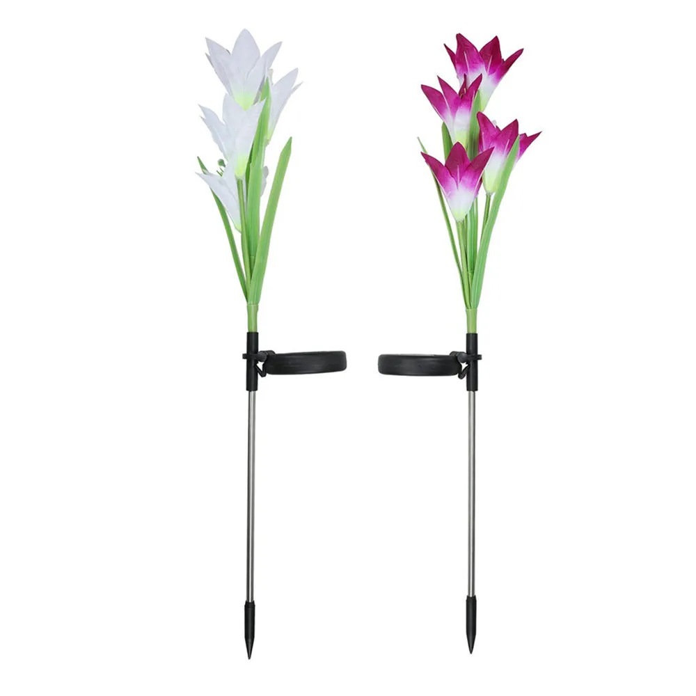 2 Pcs Lily Flower Solar Powered Garden Stake Light Multi-color Change LED Light