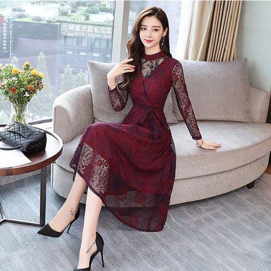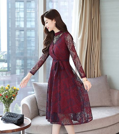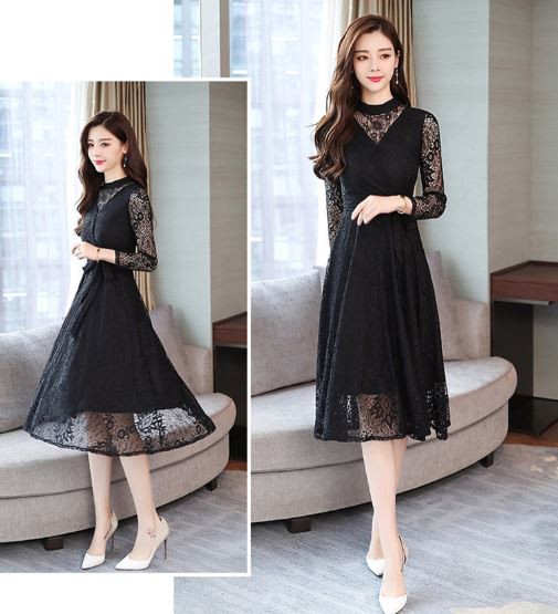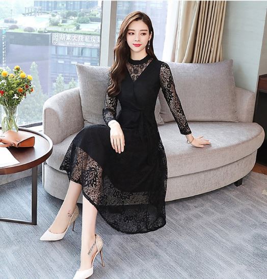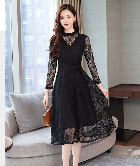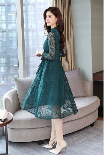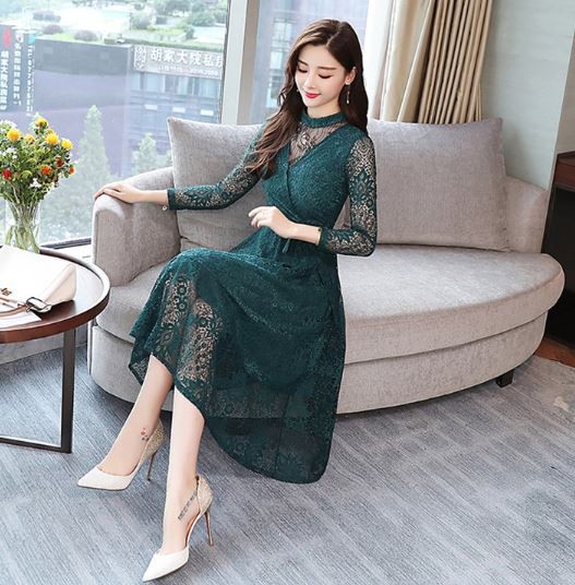透け感のあるレース使いが華やかなパーティードレスです。