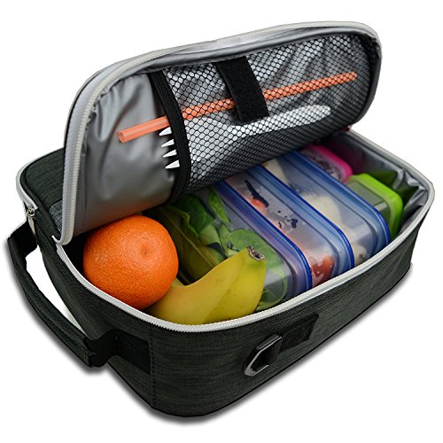 -. Feature : KEEPS FOOD FRESH - Hot, warm or cold foods, not a problem! / RIGHT SIZE - Ample space for lunch, and the bag can easily fit into a backpack (9 x 11 x 3.5 in) / TWO COMPARTMENTS - Two compartment, two zipper design to keep hot and cold foods separate / FREEZER SAFE & MACHINE WASHABLE - Throw it in the freezer for extra cold food; get it dirty, then clean it up with ease / 100% GUARANTEE & 1 YEAR WARRANTY - Contact us and we will take great care of you