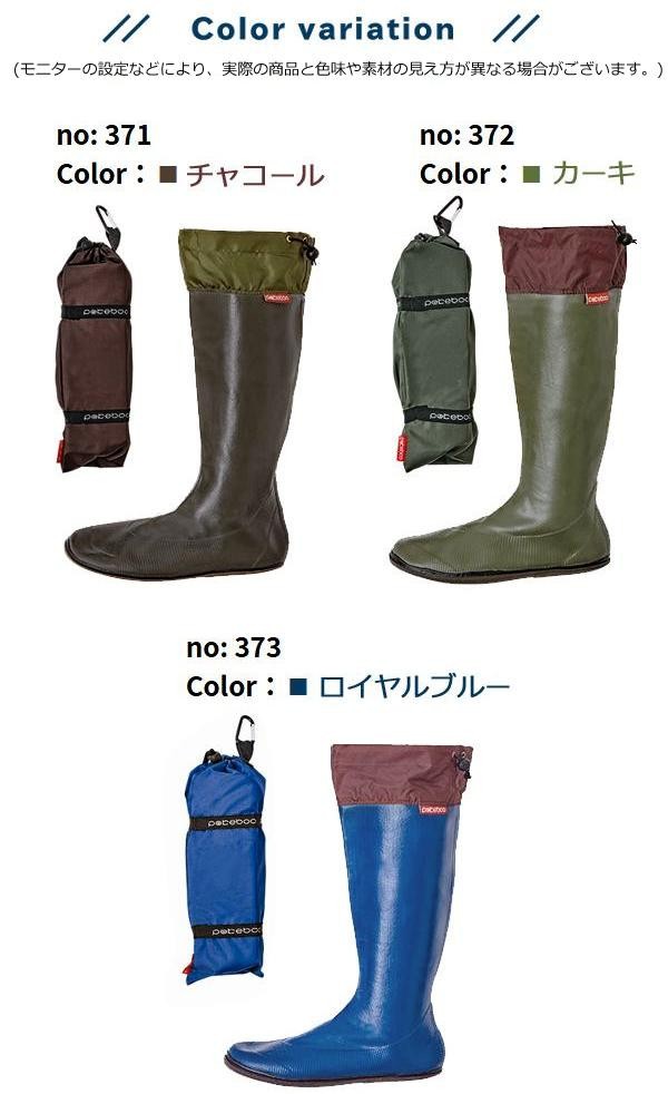 | 軽量で、足全体に吸い付くようなフィット感と快適な履き心地!!柔らかいラバー素材なので、くるっと丸めて付属の収納袋にスッポリ入ります。収納袋はカラビナ付きなので持ち運びもラクラク♪野外フェスやキャンプ、フィッシングなど、さまざまなアウトドアシーンで活躍します!また、急な悪天候など、アーバンアウトドアでもお洒落に履きこなせるブーツです。 |