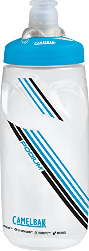 CamelBak Podium 21 oz revolutionized the sport bottle by offering an innovative design that simplifies high performance hydration. The patented spill-proof Jet Valve allows the user to hydrate immediately without having to open or close a drinking interface and the bottle's streamlined ergonomic design offers excellent squeezability without compromising bottle grip. The large aperture of the drinking nozzle generates an exceptional water flow rate and is easy to remove for thorough cleaning. The Podium also has a lockout dial with easy to read graphics for leak-proof transport.Feature