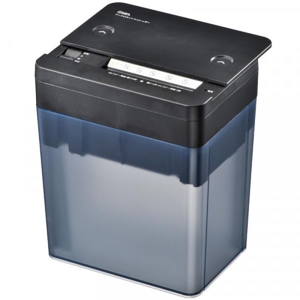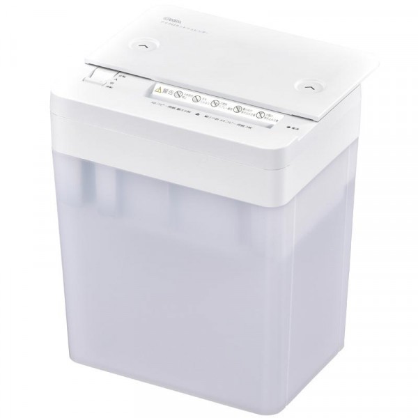 | 場所を選ばないコンパクトなシュレッダーです。55dBと静かな作動音です。安心のスライドカバー式なので、使わない時は閉じておけます。一度に裁断できる枚数は最大A6用紙6枚です。連続使用時間は3分です。紙くずのたまり具合を確認しやすい半透明のダストボックスです。 |