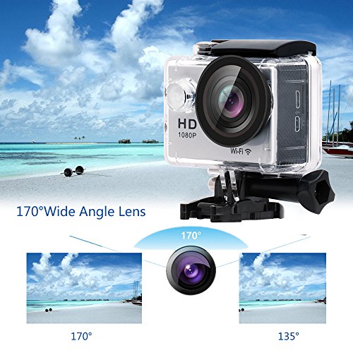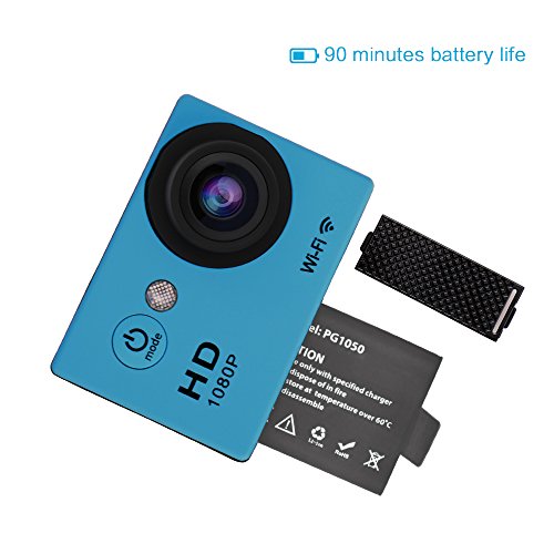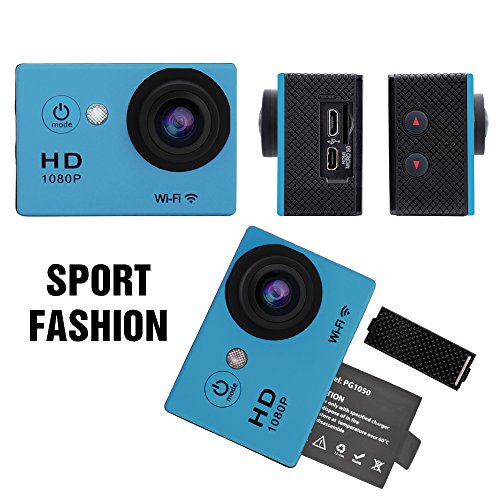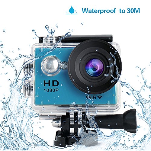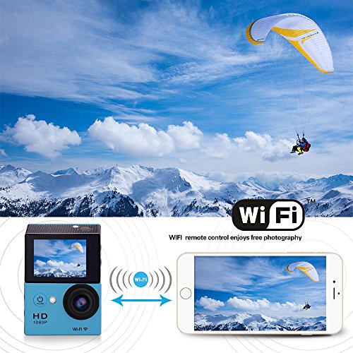 Action Camera W9 Wifi 12mp 170 Degree 1080p 2 inc LCD Digital 30M Waterproof WiFi Remote Control Car Bike Helmet Sports Action Camera Set (Blue)