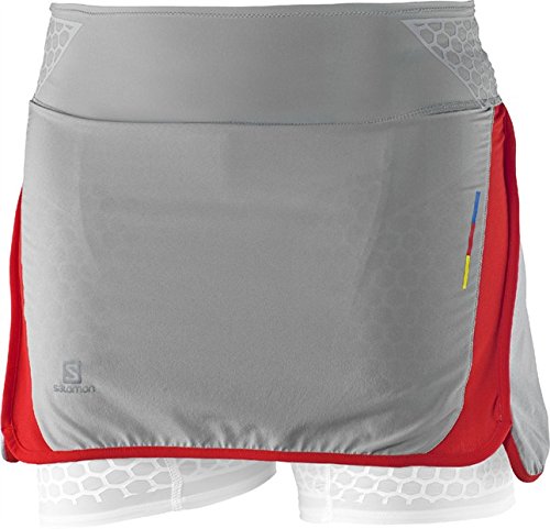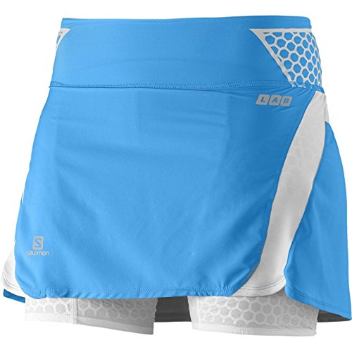 Studio : Salomon Publisher : Salomon Product Description The Salomon Women's S-Lab Exo Twinskin Skort combines a built-in compression short with a lightweight woven outer skirt that provides trail runners with muscle support and postural control while effectively wicking moisture. Made with ActiLite Stretch Woven fabric, ActiLite Stretch Mesh fabric, and ActiLite E Jersey for optimal mobility, comfort, and coverage. Integrated liner short provides compressive support which hugs your muscles to help absorb shock and reduce muscle vibration. Exo Sensifit technology is designed to help your muscles work more efficiently so that you can run longer, run easier, and recover better. Mesh panels increase breathability and ventilation at the back and along the sides of the skirt. Twinskin construction combines the inner and outer materials at the inner thigh to reduce the opportunity for chafing or discomfort. An elastic waistband ensures a secure, comfortable fit. Three integrated pockets to store your essentials. Reflective branding for increased visibility during night and early morning runs. Sizing (Waist):? S: 27-29", M: 29-31", L: 31-35", XL: 35-39". 0
