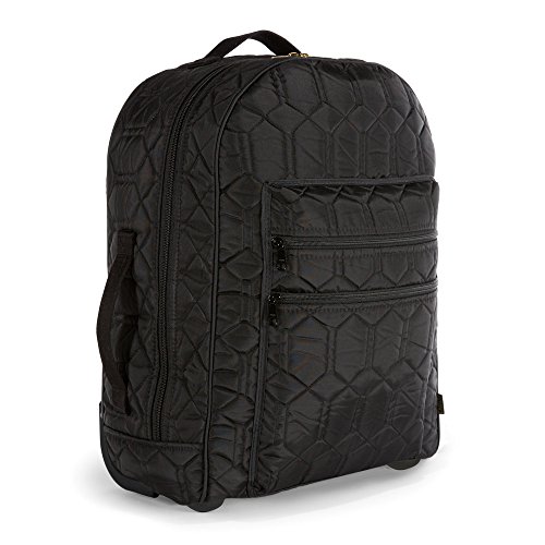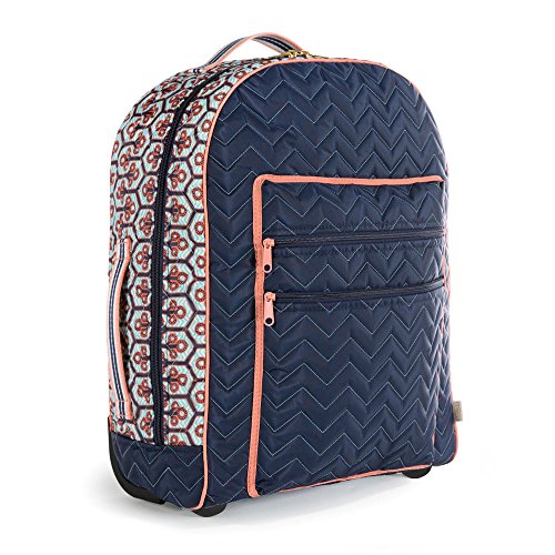 Studio : Cinda b. Publisher : Cinda b. Binding : Apparel Product Description With cinda b's Travelling Rolly your bag is sure to be a standout from the crowd at the baggage claim! This versatile carry-on sized bag rolls smoothly behind you on 2 inline skate wheels and also stands upright with its front feet. It boasts a large dual zip opening, 2 exterior zip pockets, 2 interior slip pockets, a large interior pocket, 3 handle options and a back zip to hide and store the telescoping handle. There's plenty of space inside for your outfits and travel gear with room left over for all those little "must-haves" you may find on your journey. Cinda b's Travelling Rolly is fashioned from a lightly padded, quilted nylon/poly fabric that is water resistant, stain resistant, fade resistant, surprisingly lightweight and extremely durable. ABOUT CINDA B: After running a successful interior design business in Atlanta, Cinda found it difficult to find a fully functional, stylish bag that was versatile enough for the modern woman's everyday life. As a result, the cinda b brand was created. For cinda b, it's important to produce American handbags and create American jobs. Teaming up with one of the most experienced, well-known sewing companies in the country, each and every cinda b product is proudly made in the USA. Cinda b offers a variety of pattern options that combine bold and unique modern prints with effortless functionality. The cinda b family invites busy women everywhere to discover their beautiful collections of handbags, travel bags and accessories available on Amazon. 0