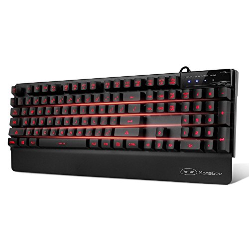 -. Title : MageGee K1 Backlit Metal Panel Gaming Keyboard for PC and Laptop, USB Wired Keyboard with Water-Resistant Design