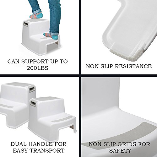 Studio : PRORIGHTY Publisher : PRORIGHTY Binding : Baby Product Product Description Growing up is an exciting time for your toddler because there's so much to see, do and learn. But when they're small, the problem sometimes is not being able to get at something that's just out of reach. Independent and Safe As a doting parent, you want to help your child to learn and gain their independence but, at the same time, you have to ensure they're safe. The Prorighty Dual Step Stool for Toddlers and Kids is the perfect answer because it's safe to use and is just the right size for your toddler, with two steps so it's suitable for kids of all ages and sizes. Each two step stool is 10.3 inches high, 12.7 inches wide and 14 inches deep (26 cm x 32 cm x 35 cm), the first step being 5 inches high (12.5 cm). Although made of lightweight plastic so it's easy to carry around, it's durable enough to hold up to 150 pounds in weight. It's also got rubber grips to prevent the stool and your child slipping and falling. Start the Journey Now To help give your child the best possible start in life, order the Prorighty Dual Step Stool for Toddlers and Kids now. Just click Add to Cart and complete the order to get them started on an exciting learning journey that will increase their knowledge and independence. 0