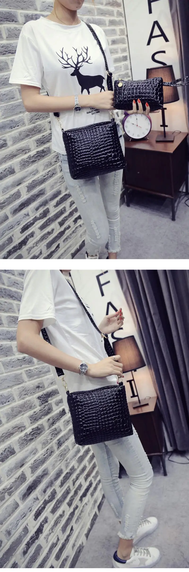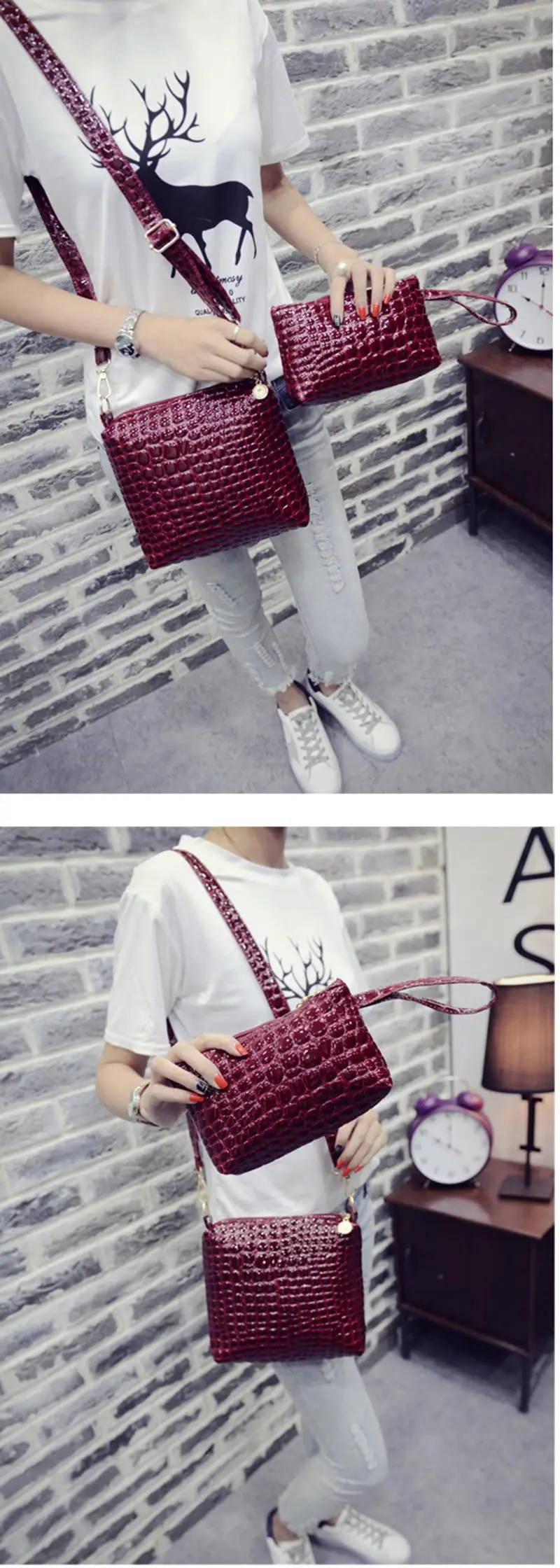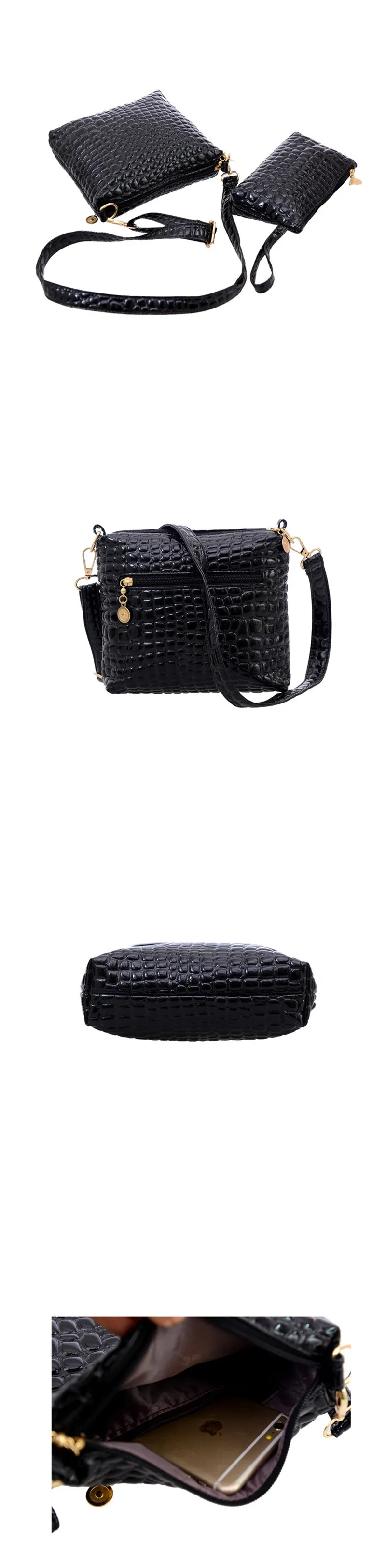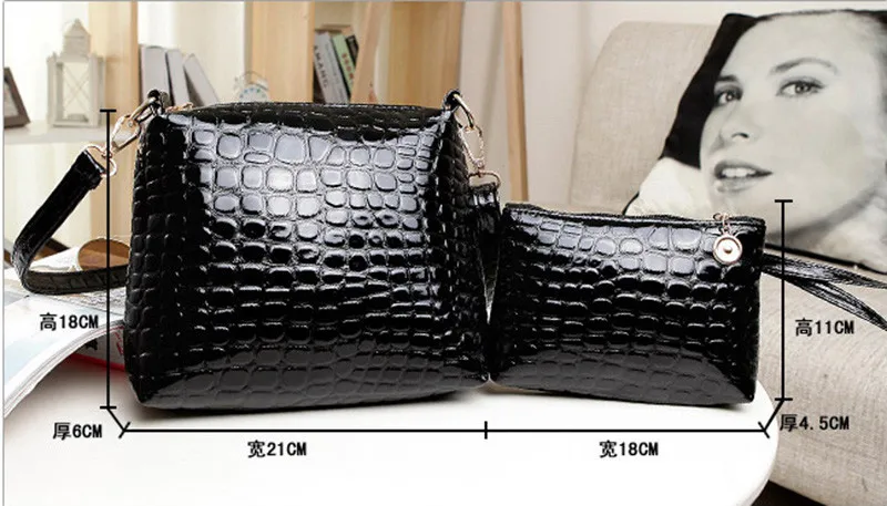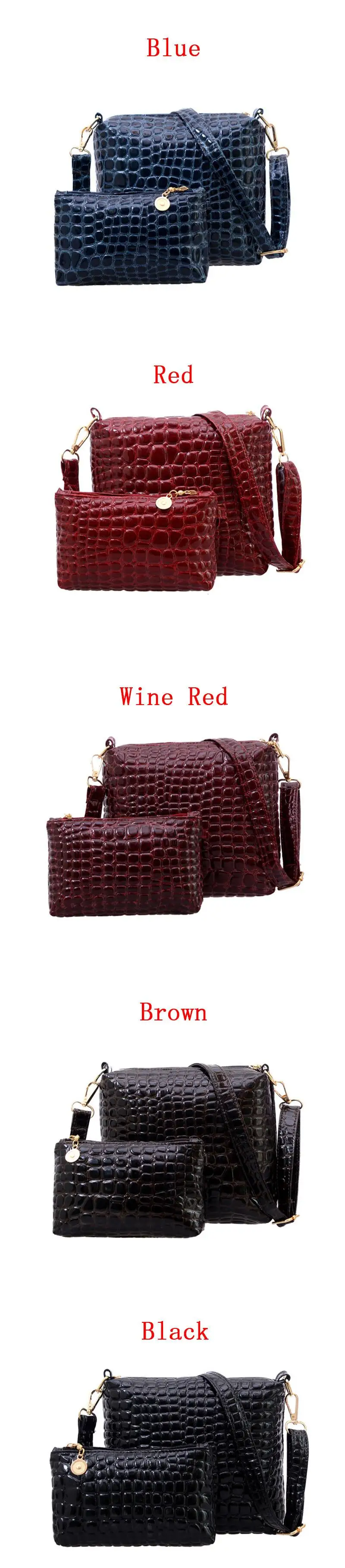 2ピースバッグセットメッセンジャーショルダーバッグワニpuレザーカジュアルクロスボディキルティングバッグセットクラッチ複合ハンドバッグ