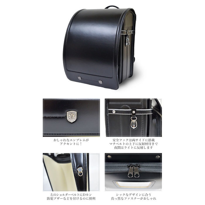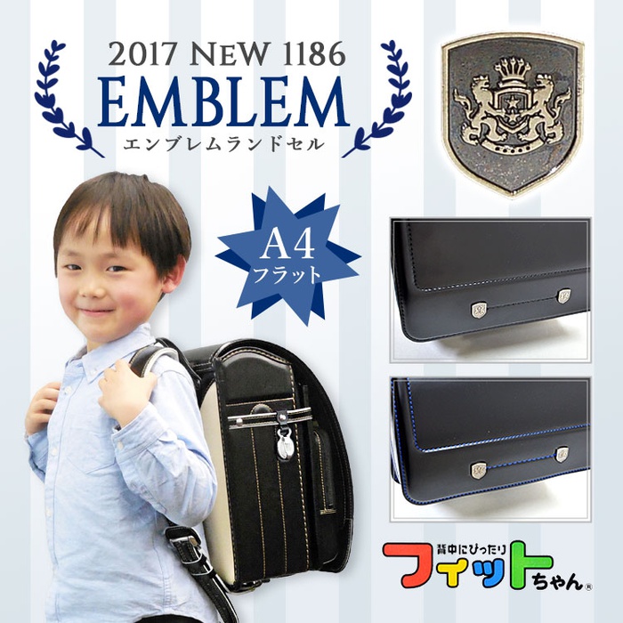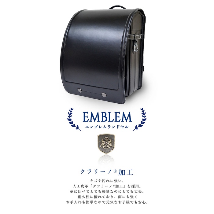 ■란도셀남아용 피트상 6년간 보증 A4 플랫 사이즈 클리어 파일 대응 입학 1학년 초등학생 뉴 엠블럼 입학 축하 검정 클라리노 원터치 강건 1