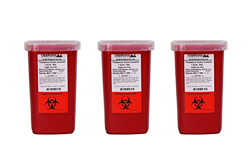 Studio : Oakridge Products Publisher : Oakridge Products Product Description Receive three sharps containers. Each hazardous waste sharps container is one quart and this is the flip lid variation, also available in a slide lid variation on another Amazon listing. Designed for use by phlebotomists or others who need a small transportable container. The vertical drop maximizes useable container volume while providing a space saving option for totes, carts and work spaces. Contains a built-in needle removal port. Shatter-resistant. Punture resistant. Transparent lid allows for easy viewing. Material: High Impact Polypropylene. 0