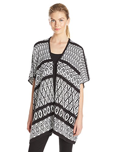 Modified elbow jacquard ponch like pullover with hook and eye.