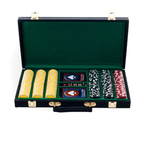 Studio : Bicycle Publisher : Bicycle Binding : Sports Product Description Choice of 3 Colors plus BONUS ITEMS. This 300 Big City Casino Chip Set with Vinyl Case has everything you need to get your game off the ground! These 39 mm diameter casino sized chips are 11.5 grams in weight. They are produced from a composite resin and an insert that gives them the weight feel of a heavy casino quality chip. The detail on these chips is great. The six stripes and dice are the most interesting design on the market. This unique design is great for casinos and home-style play alike. The vinyl chip case will offer the most style and protection for your investment. It's made of durable padded vinyl on the exterior. The interior is green felt lined wood with space for 300 chips, two decks of cards and five dice (all included). Accept no substitute for your poker game or event. 0