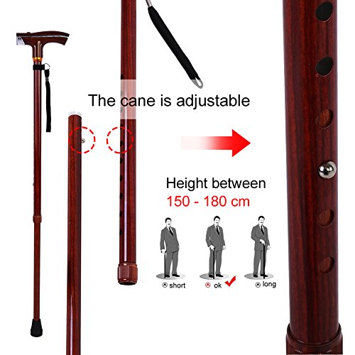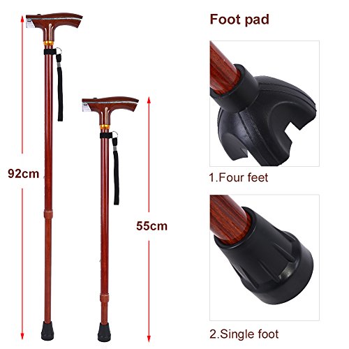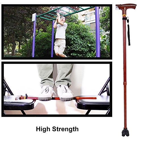 Specifications: Material: Aluminium alloy Color Options: Rosewood color; Burlywood color Thickness: Approx. 1.2 mm / 0.04 inch Total Length: Approx. 92 cm / 36.22 inch Retracted Length: Approx. 55 cm / 21.65 inch Suitable for: Height between 150 - 180 cm / 4.9 - 5.9 ft Power Supply: 2 * AAA batteries (not included) Weight: Approx. 400 g