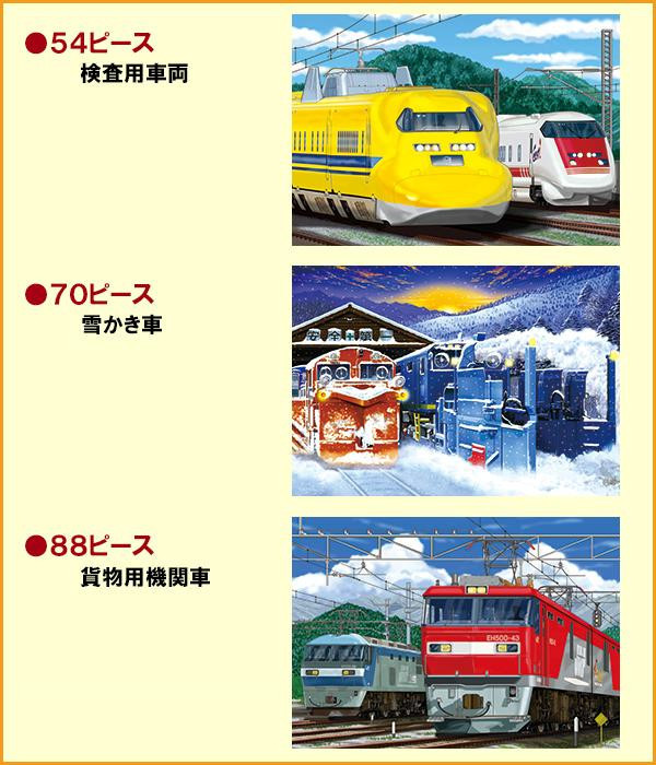 | 働く電車・列車をそれぞれが活躍するシーンごとに描いたパズル。 |