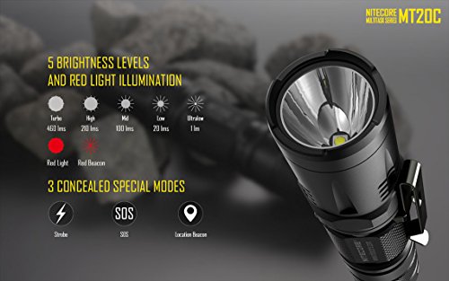 -. Title : NiteCore MT20C 5-Mode Cree XP-G2 460 lm LED Flashlight, Black, Left/Right