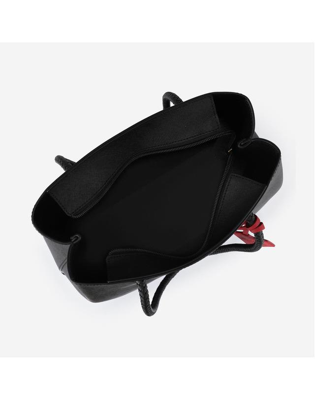 솔리드 컬러 바탕에 로고를 배색하고 위빙 장식의 핸들과 참 장식으로 포인트를 주어 멋스러움이 느껴지는 쇼퍼백입니다.