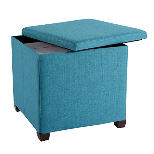 Product DescriptionLANGRIA Living Storage Ottoman Seat Bench Footrest Seat, Square Linen Upholstered with 4 Sturdy Legs (Teal)0