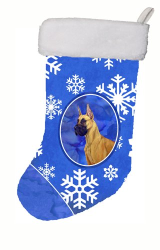Caroline's Treasures LH9265-CS Great Dane Winter Snowflakes Holiday Christmas Stocking, 11 x 18", Multicolor