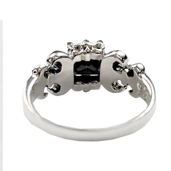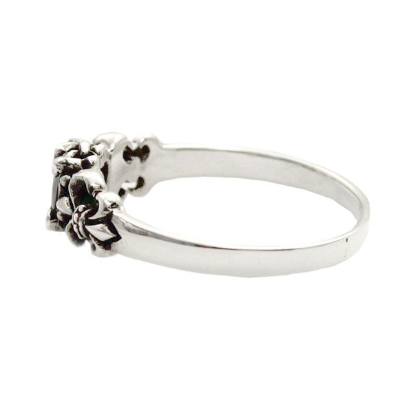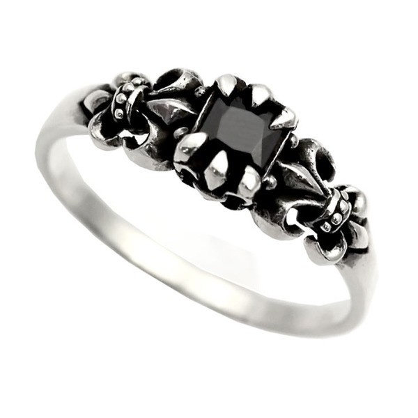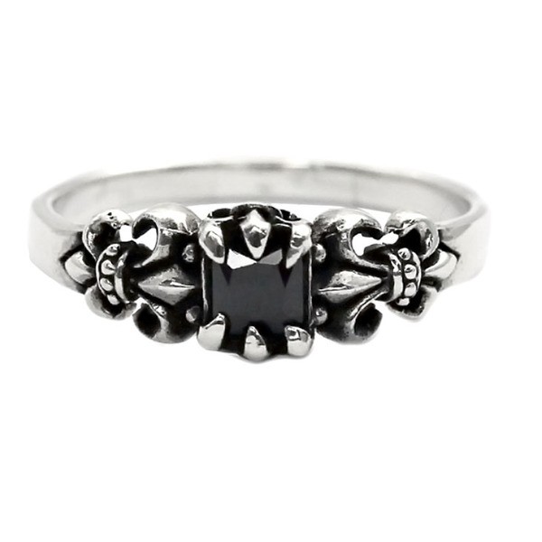 百合の紋章をサイドにあしらったRoyal Jokerサンクチュアリーリング。スクエアカットのブラックCZ(キュービックジルコニア)をセットしたハードな指輪。石をセットした爪も6本の爪でがっしり留め、側面には百合の紋章がデザインされています。サンクチュアリーとは聖域を示し神々が宿る場所で、クールに決めたい時の万能リングです。ホワイトCZもあるのでペアとしても活躍しちゃいます。本物のシルバーだから出せる質感が堪能できるアイテムです。専用のケースが無料で付属するので、プレゼント・ギフトにとってもオススメです。