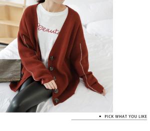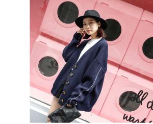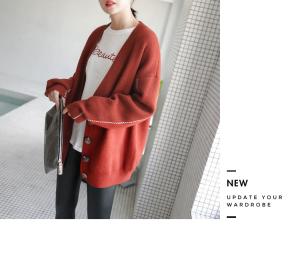 ニットカーディガン 羽織り アウター セーター 長袖 ボタン ライン ルーズ