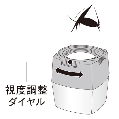 ●対象物を覗きながら、視度調整ダイヤルを回して、最も見やすい位置を選んでご使用ください。