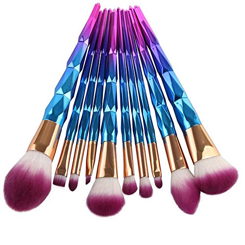 Coshine 10pcs Unicorn Rainbow Diamond Makeup Brush Set Professional Foundation Powder Cream Blush Brush Kits