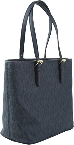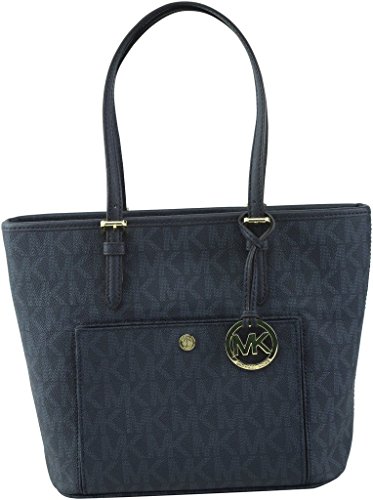 Pixilated logo print styles this simple yet sophisticated carryall finished with creamy leather trim. Interior pockets keep essentials organized, making it the ideal work-to-weekend design. By