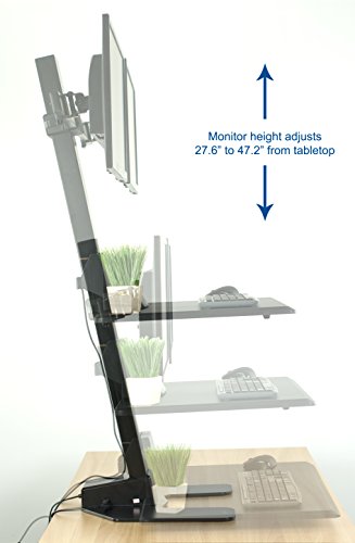 -. Feature : ELECTRIC POWERED SIT to STAND WORKSTATION - At the touch of a button, reduce stress and exhaustion that can result from prolonged periods of standing or sitting during work. / SPACIOUS PLATFORM - Large 28" x 19" surface fits side-by-side mouse and keyboard, devices, desk decor, and more. The integrated front slot holds most tablets and phones. Total weight capacity is 44 pounds. / DUAL MONITOR MOUNTING - The double mounting brackets fit most 13" to 32" computer monitors with standard VESA compatibility. 45-degree tilt and 360-degree rotation create the optimal viewing experience. / TOUCH CONTROLLER - Easy-to-use press controller controls the height adjustment and takes away the effort of manually adjustable desks. The height of the monitors adjusts between 27.6-inches and 47.2-inches from the tabletop surface. / CABLE MANAGEMENT - Keep AV and power cords out of sight and organized.