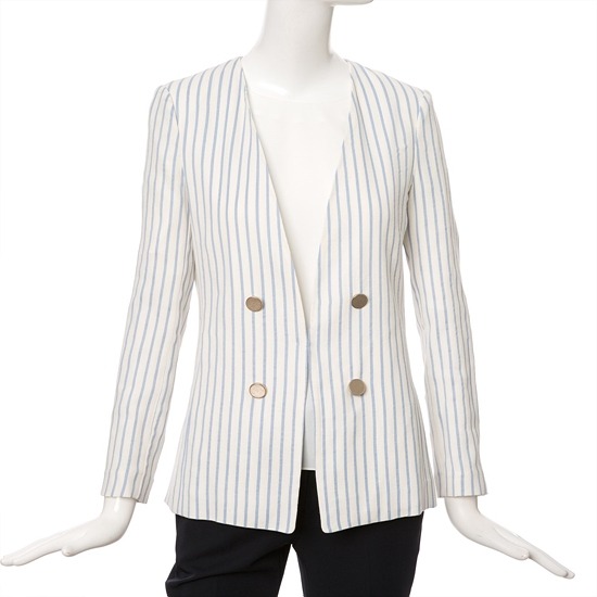KL, 캐쥬얼하게 코디하기 용이한 시원한 스트라이프 노카라 더블자켓입니다