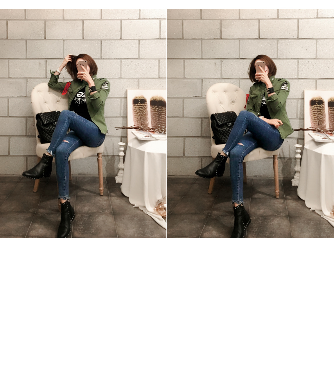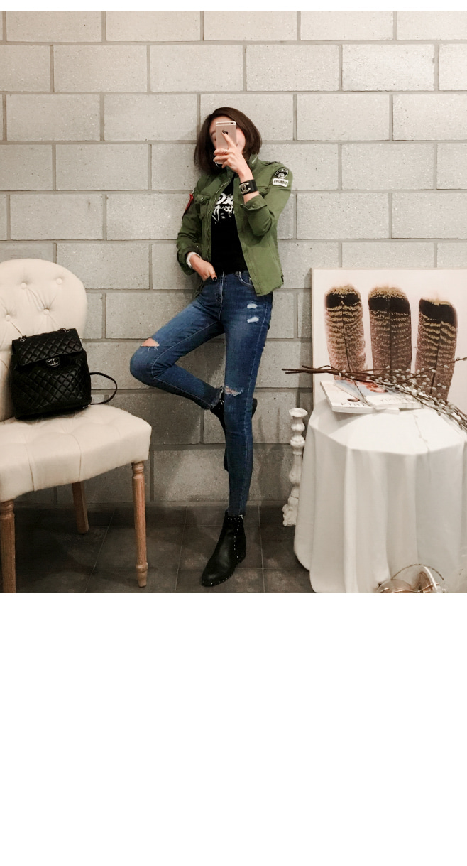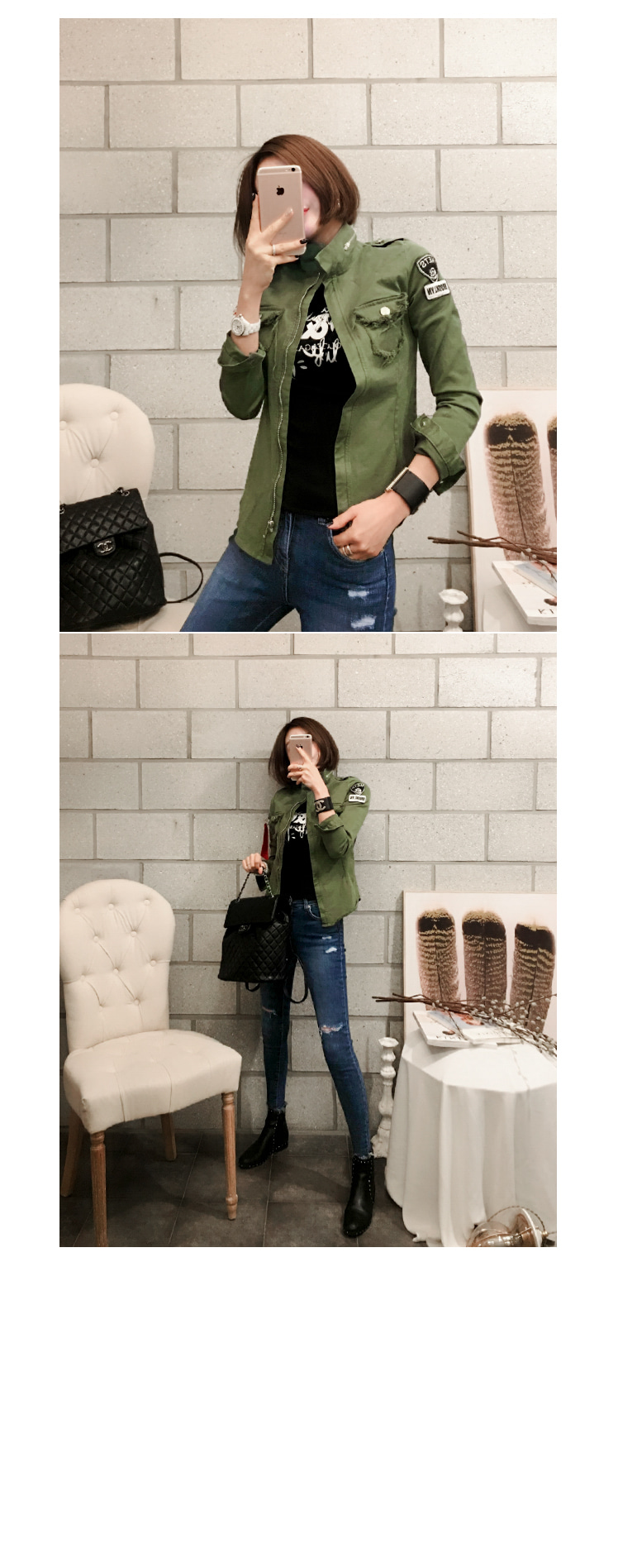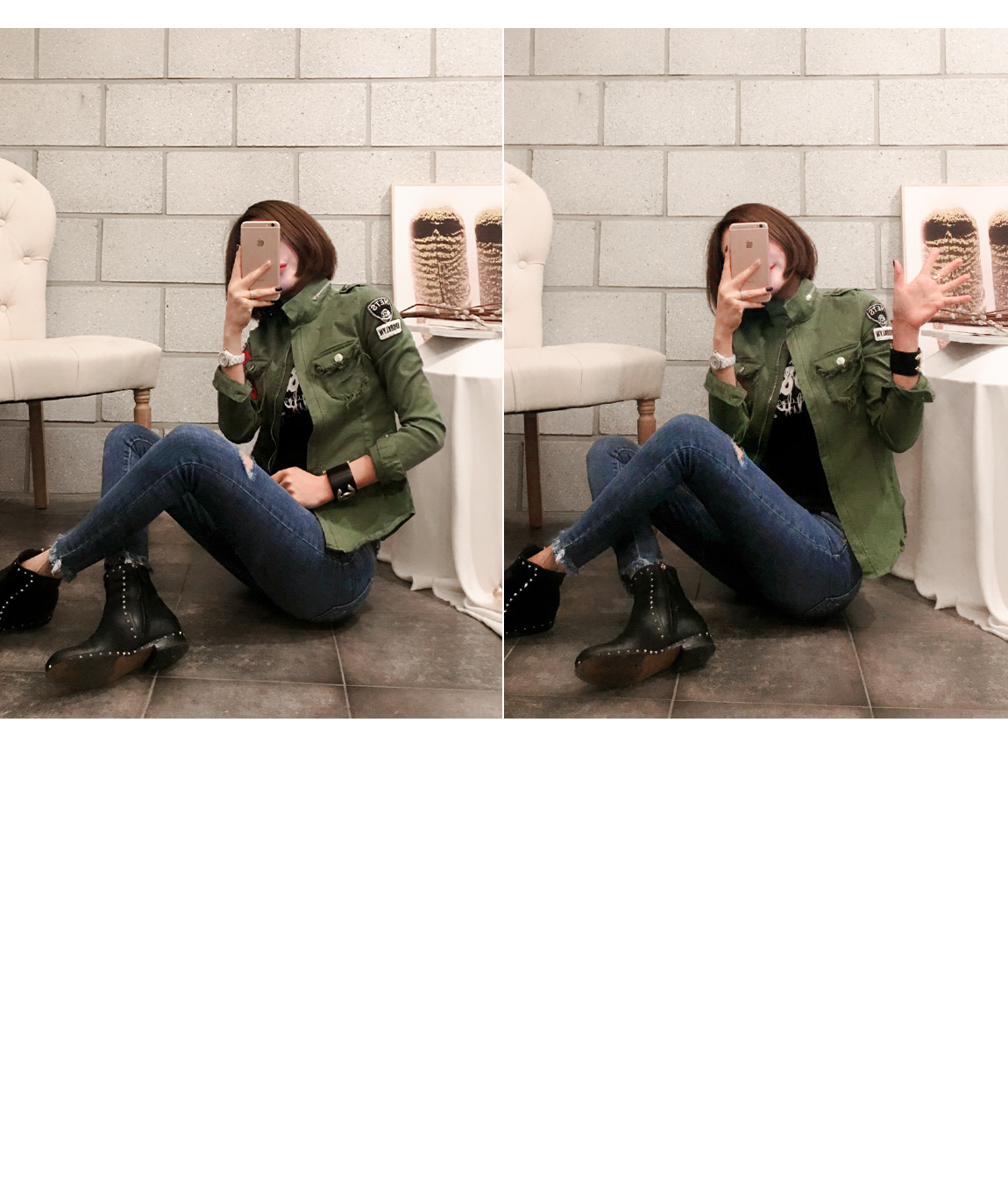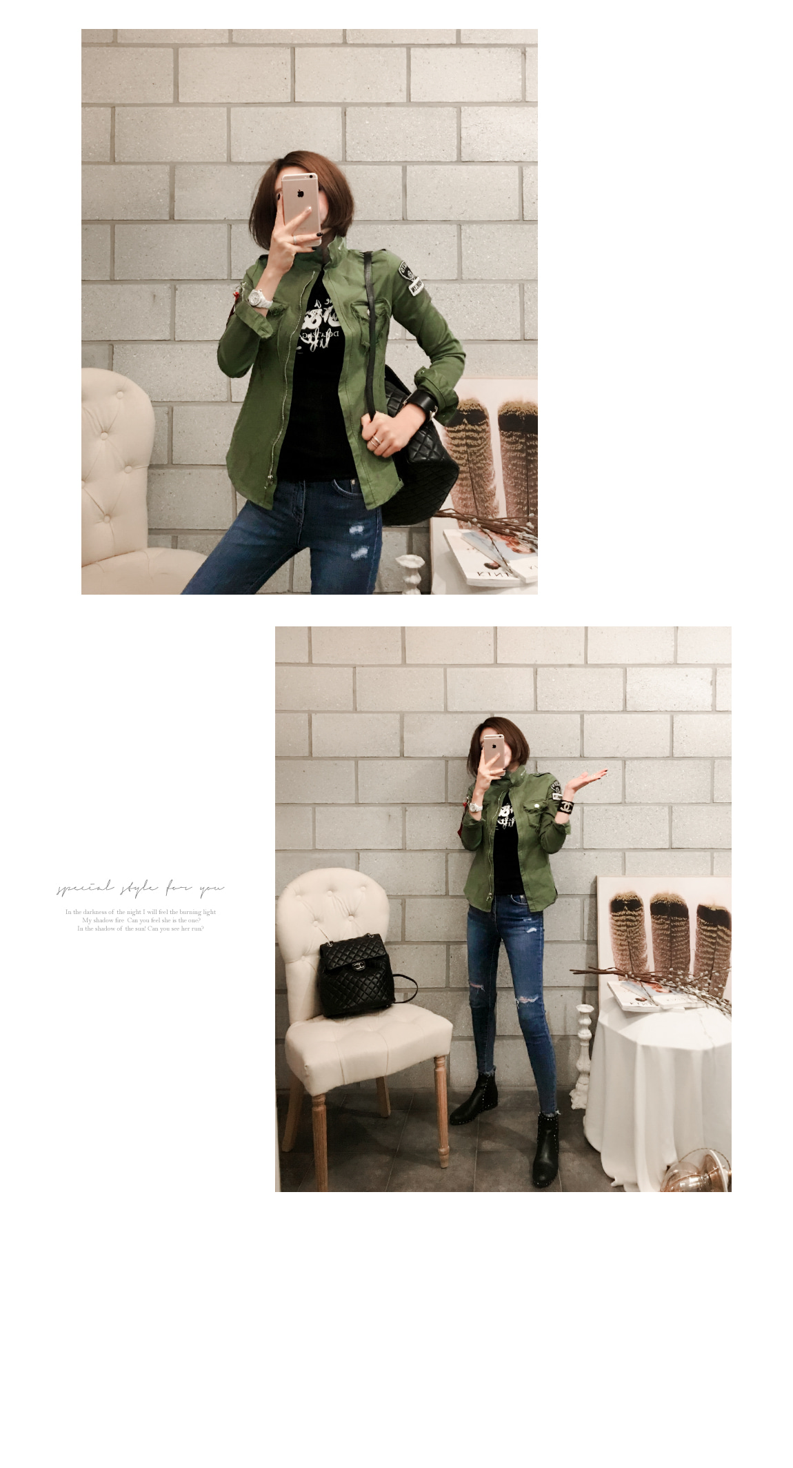 빈티지한 포켓과 와펜으로 유니크한 포인트를 주었어요