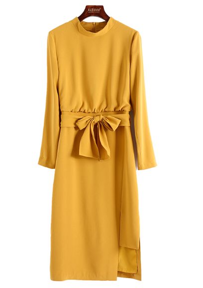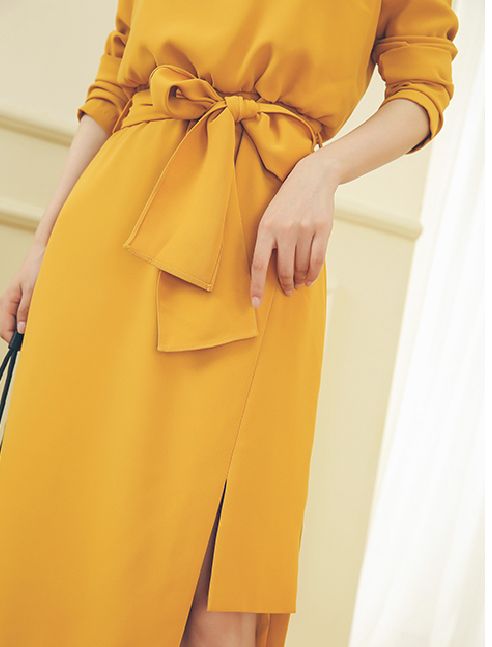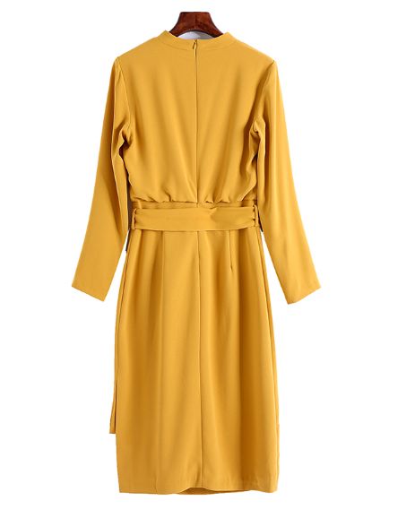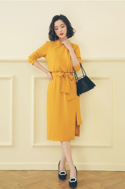 ドレスシーンでも着られるウエストベルト付のスタンドカラーのワンピースです。ゆったりしたシルエットながら、ベルトによりウエストを引き締めてシルエットを綺麗に見せられます。カジュアルやオフィススタイルに使えるアイテムです。