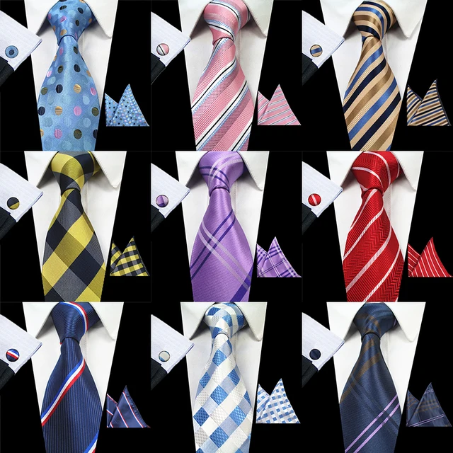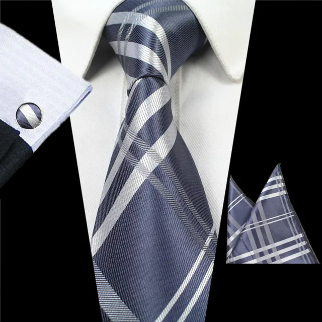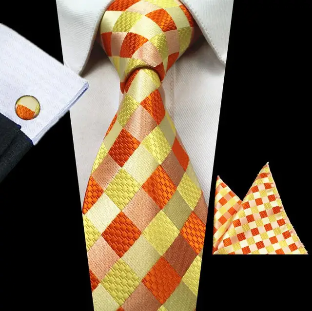 | [해외]JEMYGINS 새로운 패션 격자 무늬 넥타이 100% 실크 자카드 남성 넥타이 Gravata 손수건 커프스 세트 포켓 광장 남성 넥타이 웨딩 |