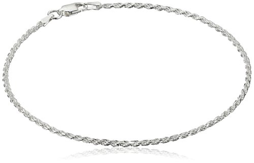 -. Feature : Sterling silver anklet with diamond-cut rope chain featuring lobster-claw clasp / Made in Italy