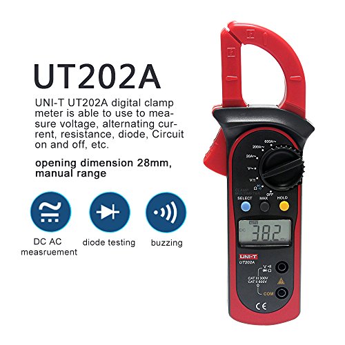 Signstek Uni-t UT202A Auto-Ranging AC/DC Voltmeter and AC 600 AMPS Meter Auto/Manual Range Digital Handheld Clamp Meter Multimeter AC DC Test Tool