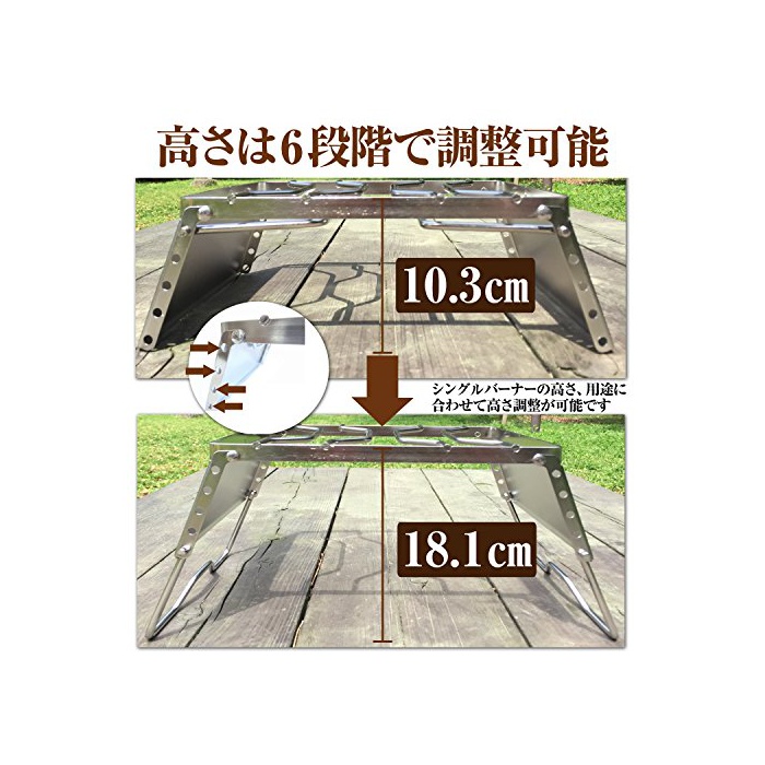 원본상품명: ZAFIELD アウトドア 風防板付き 五? クッカ?スタンド グリルスタンド アジャスタブルグリル 高さ6段調整機能付