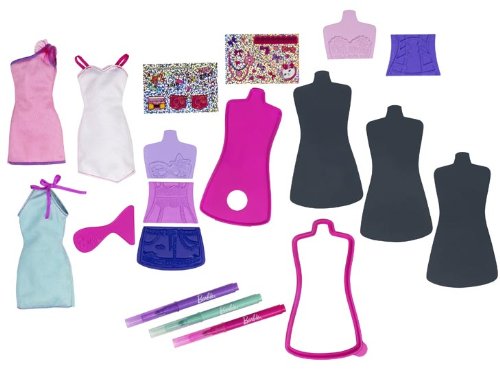 - Feature : Girls become the designer for Barbie / Just swipe, color and design! / Choose the bodice, torso and bottom / Transfer designs to clothing by rubbing / Further tailor with stickers and clothing markers