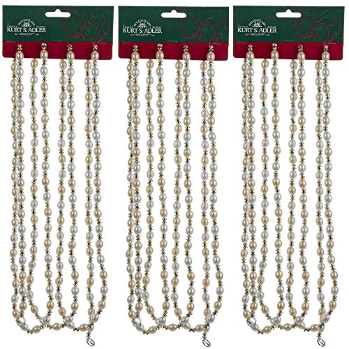 Kurt Adler (3) Gold & Ivory Christmas Beaded Garland Sets, 9 Feet Lengths