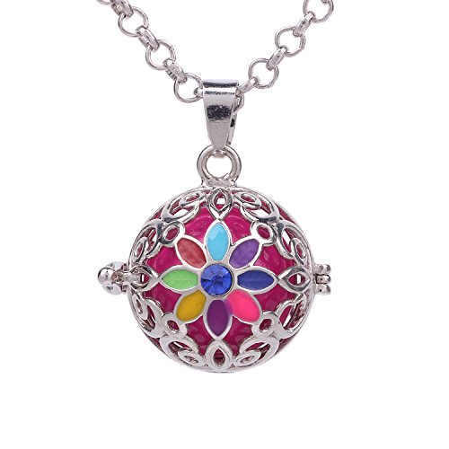 -. Title : Silver Multi-color Flower Musical Maternity Chime Necklace Ball Pendant Oil Diffuser Locket