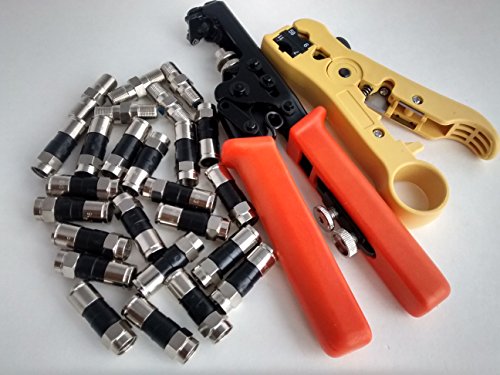 -. Title : Coax Compression Connector PRO PAK Kit -20 PPC Quad Shield F Connectors, 5 PPC High Freq Barrel Connectors with Professional Adjustable Compression/Crimping tool and cable Stripper - Rg6/RG59/RG58 Series