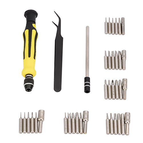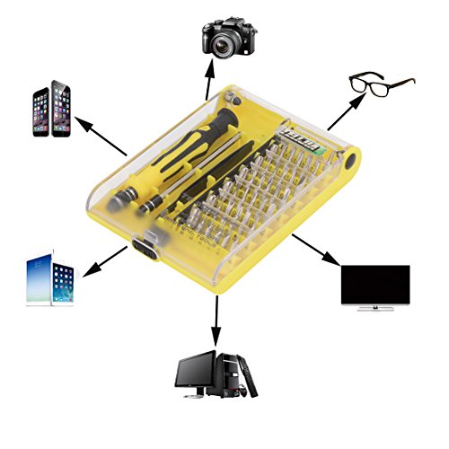 - Multi-function screwdriver set; 45pcs in 1 tool with 42pcs precision screwdriver bits designed to service all popular electronics and products such as Eyeglass, Computer, iPhone, Watch, Game Console etc.