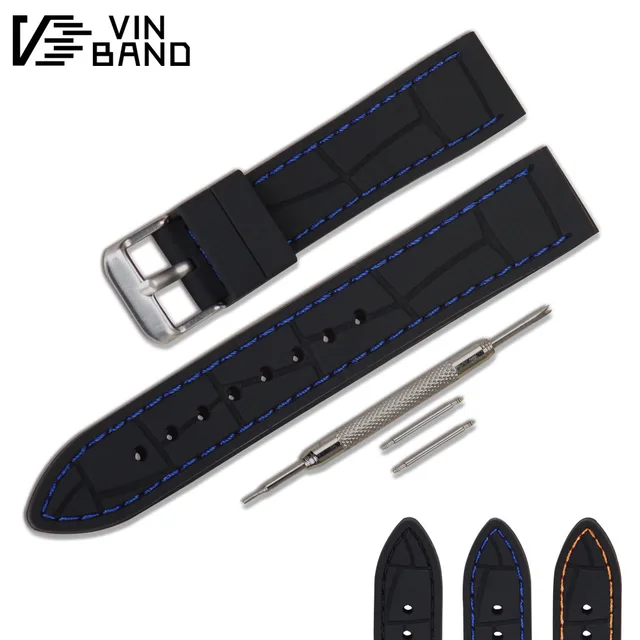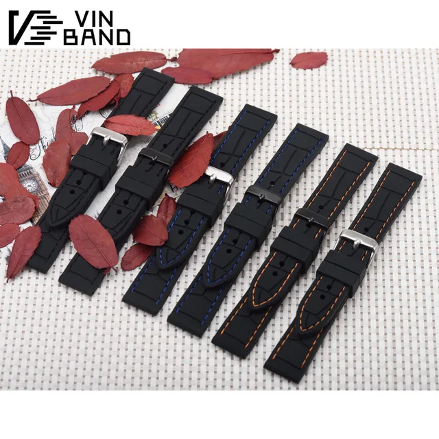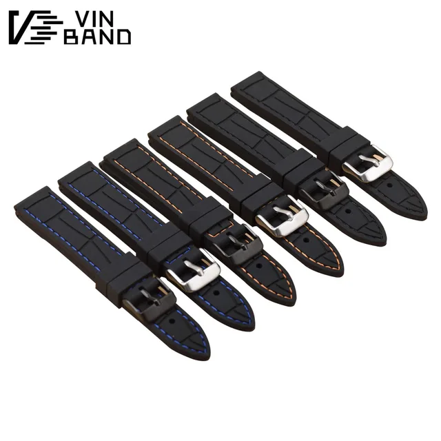 | [해외]VB 실리콘 손목 블랙 다이버 시계 밴드 고무 시계 스트랩 스테인레스 스틸 버클 걸쇠 20 미리메터 22 미리메터 시계 스트랩 |