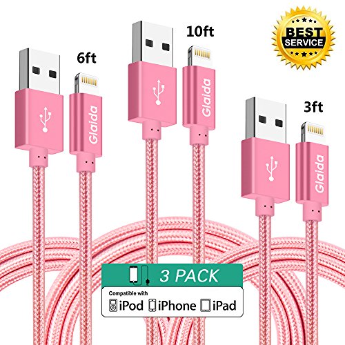 One package includes 3PCS Different length(3ft6ft10ft) Rose Gold tangle free nylon fiber braided lightning cables at an incredible value price.