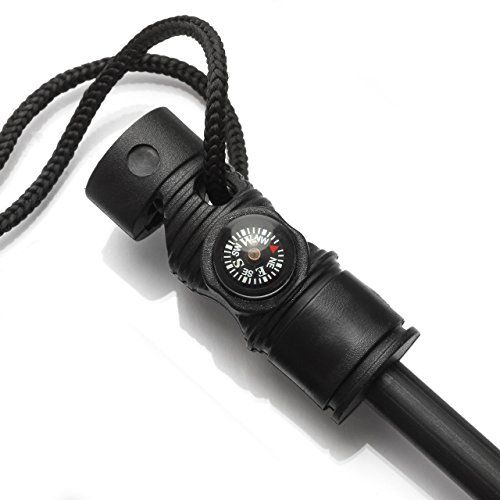 Not only it provides a trusty way to build up a fire under any circumstances, it also features a built-in compass and a special emergency whistle!