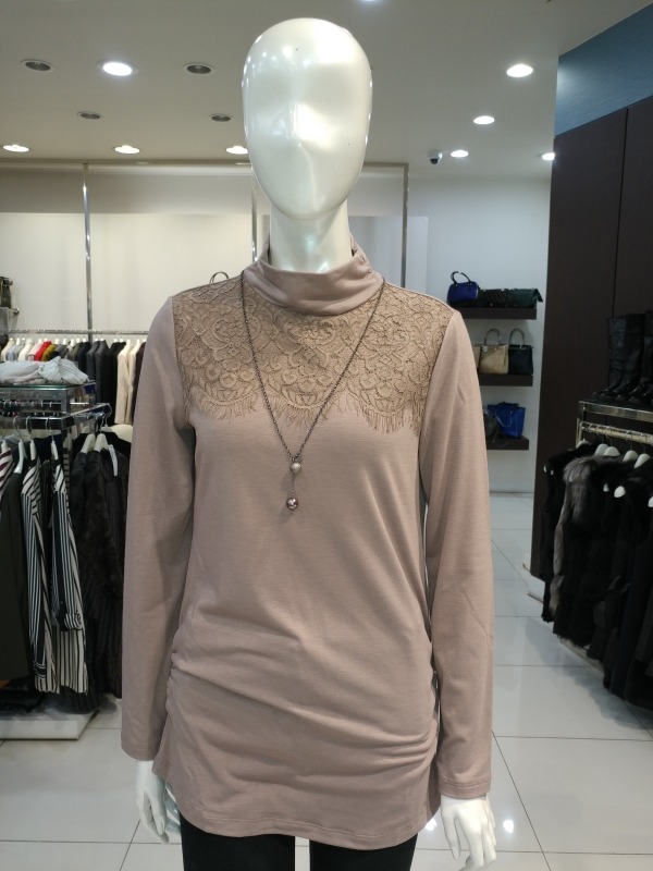 허리셔링 라인 레이스배색 티셔츠