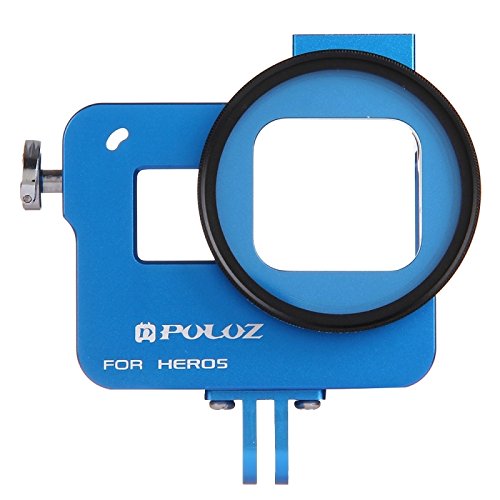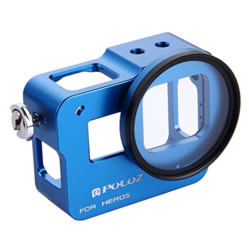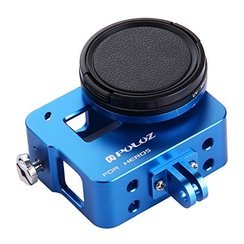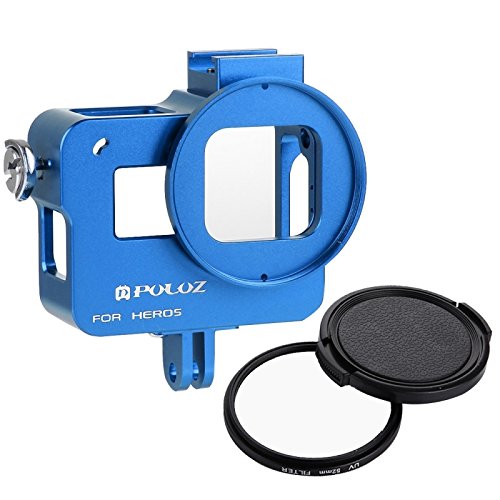 PULUZ Aluminum Alloy Housing Shell Case CNC Protective Cage with Clod Shoe Mount & 52mm UV Lens Filter for Gopro Hero 5 (No Back Cover) (Blue)