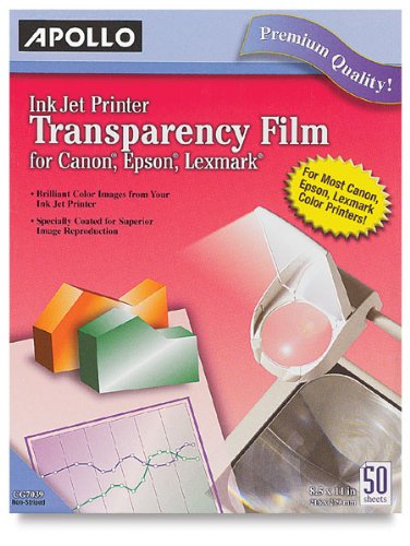 Premium transparency film for use with ink jet printers and copiers. Fast-drying formula dries faster than standard films, making it great for last-minute presentations. Specially coated for brilliant, detailed color image reproduction and exciting visuals using personal computers and printers. Universal design makes it compatible with most ink jet printers. Includes 50 sheets per box.Feature