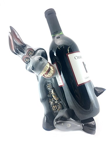 New Steampunk Drinking Donkey Wine Bottle Holder Statue or Decorative Mule Sculptures for Country Farm Bar and Kitchen Counter Decor or Western Style Wine Racks Disply As Holiday Gifts for Pet Owners