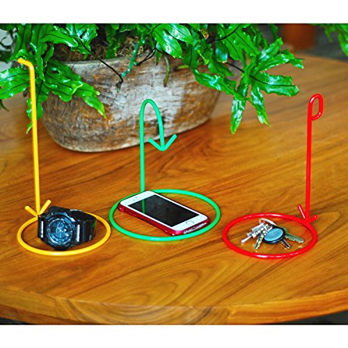 Place keys, media players, wallets, and other items inside the metal ring, and the bright colors and eye-catching arrows will help you remember where you put them.