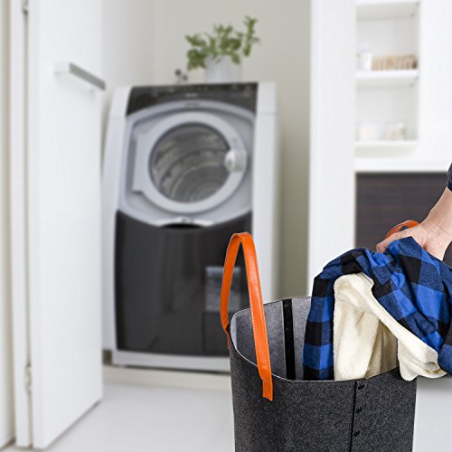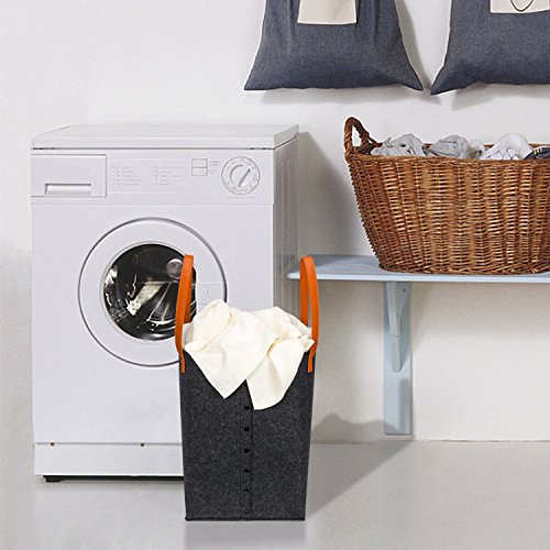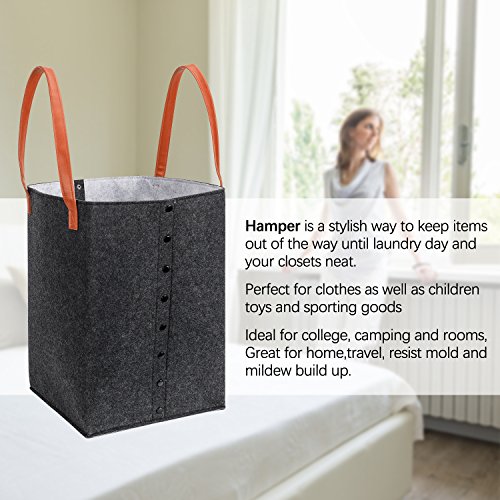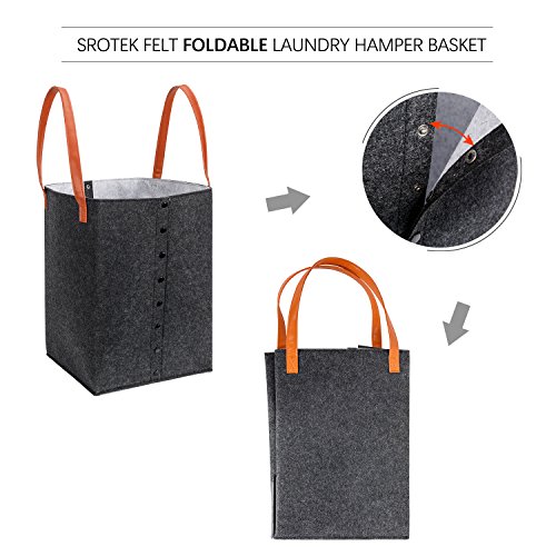 Srotek Felt Foldable Laundry Hamper Basket With Reinforced Handle,Durable,Water-resistant (16.5”x11”,Grey)